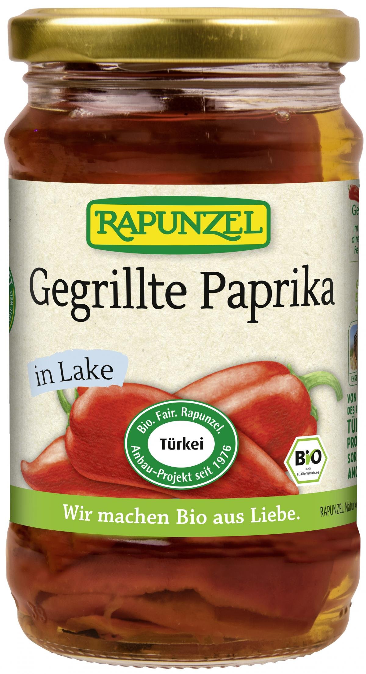 Sonnengereifte Paprika der Sorte'Capia' aus dem Rapunzel Türkei-Projekt. Die von Hand geernteten Paprikas werden in einem speziellen Ofen direkt über Feuer gegrillt. Das verleiht ihnen den typischen Grillgeschmack. Die Paprikas schmecken aromatisch-fruchtig und sind vielseitig verwendbar.