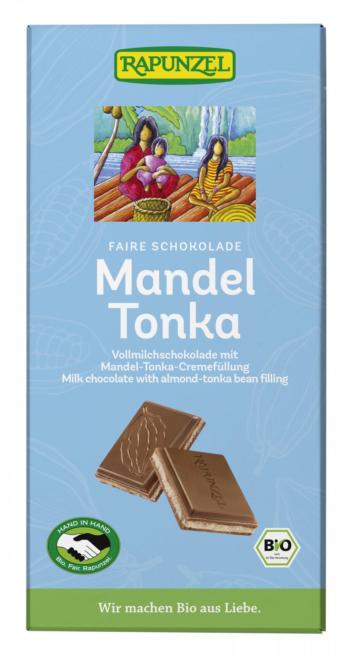 Ein wahrhaft exotischer Genuss! Zartschmelzende Vollmilchschokolade gefüllt mit feiner Mandel-Milch-Creme, verfeinert durch das blumig süßliche Aroma der Tonkabohne. Rapunzel Schokolade steht für höchste Qualität nach Schweizer Herstellertradition verbunden mit wertvollen fair gehandelten Zutaten aus ökologischem Anbau. Das intensive Conchieren ist neben den wertvollen Rohstoffen das eigentliche Geheimnis des wahren Schokoladengenusses. Durch die Kunst des Conchierens entwickelt sich der anfänglich noch verborgene Reichtum an kakaoeigenen Aromen Stufe um Stufe bis zur vollen Entfaltung. Gleichzeitig entsteht vollkommene Feinheit und der unvergleichlich zarte Schmelz.