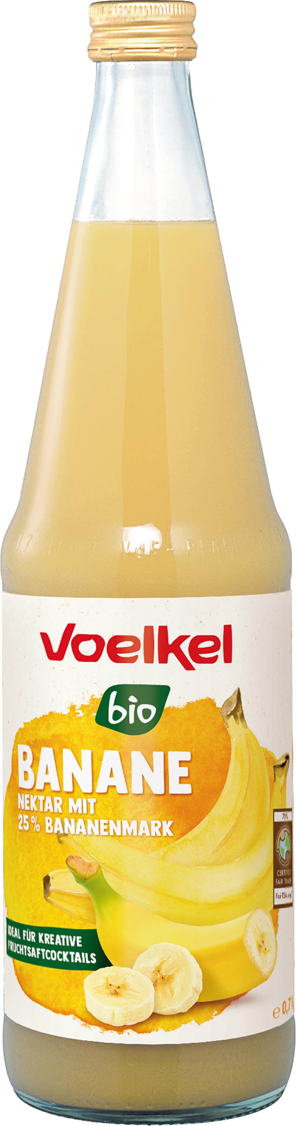 Tropisch-sommerlich: Unser Bananen Trunk verbindet den süß-aromatischen Geschmack reifer Bananen mit stillem, natürlichen Mineralwasser aus der Voelkel-Quelle. Pur, als Schorle oder auch als individuell gemixter Cocktail erfrischend exotisch.