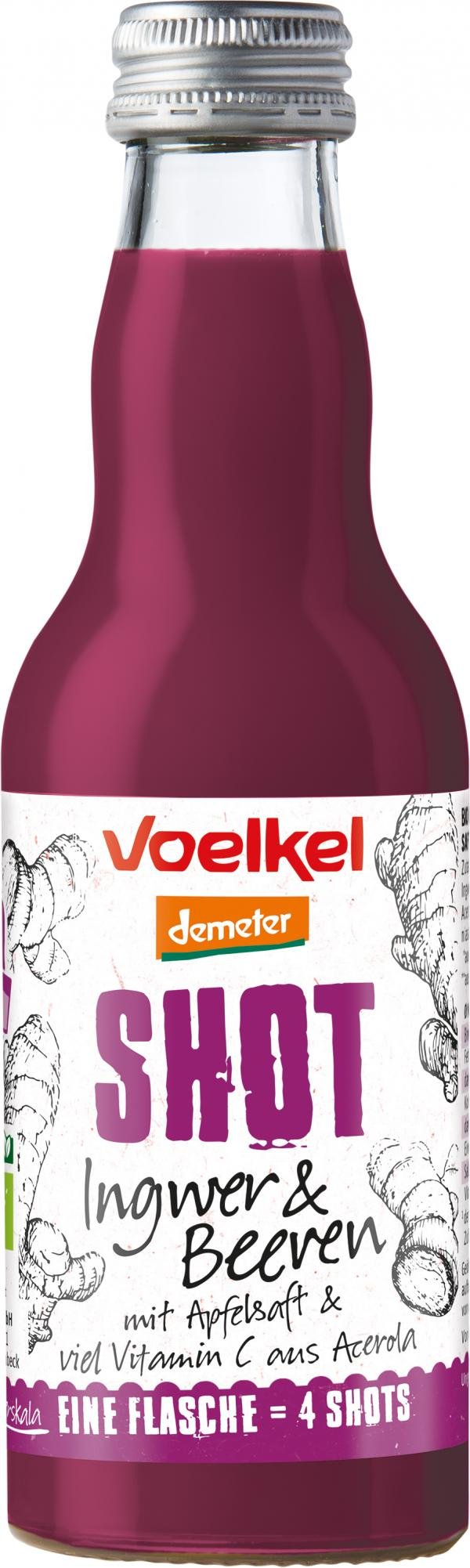 4 Shots in einer Flasche: Unser Shot Ingwer & Beeren kickt mit reichlich natürlichem Vitamin C aus der Acerola-Kirsche und dem Geschmack von aromatisch-scharfem Ingwer und fruchtigen Beeren. Hergestellt aus besten Demeter-Zutaten.