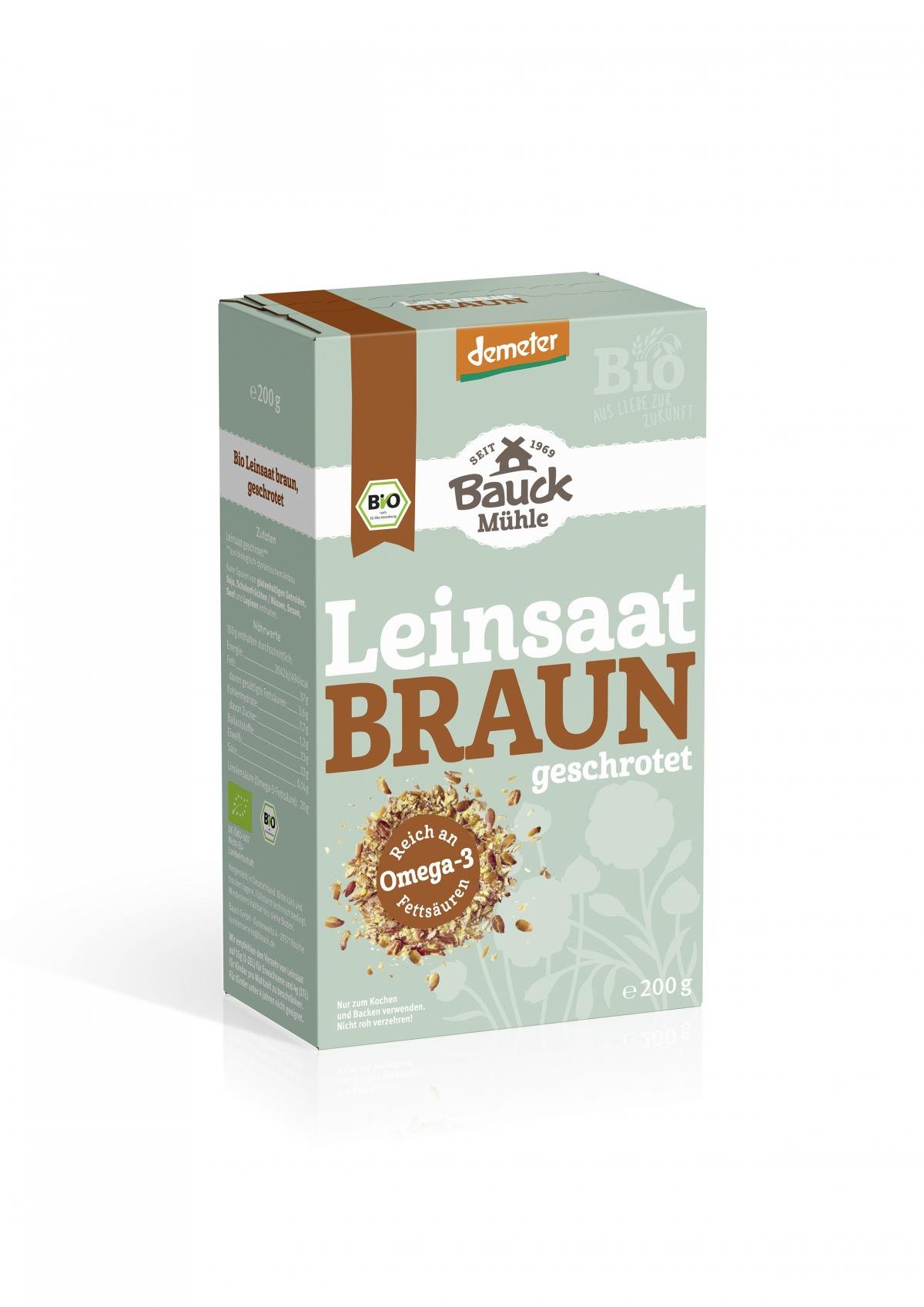 Leinsaat aus der Bauckhof Mühle ist eine schnelle, praktische Nahrungsergänzung zur ballaststoffreichen Ernährung. Sie enthält von Natur aus Omega-3-Fettsäuren. Die Bioverfügbarkeit der Fettsäuren ist aus geschroteter Leinsat besser als aus ganzer Leinsaat. Ideal als Beigabe zum Backen für Brot- oder Kuchenbackwaren, für Müslis, Joghurt oder Quark, zum Verfeinern von Gemüse- und Getreiedegerichten und zum Garnieren von Salaten.