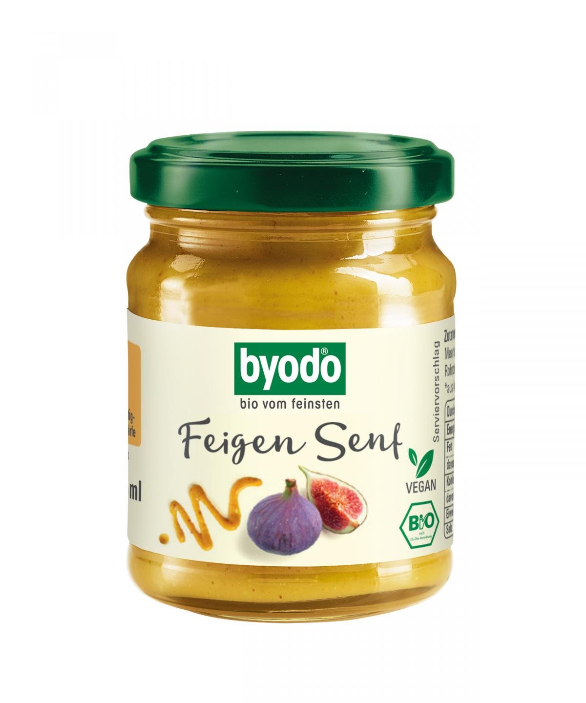 Unwiderstehliche Fruchtigkeit und eine feine Senfnote vereint der Byodo Feigen Senf. Aus 100% Bio-Zutaten, köstlich zu Käse und in Dressings.