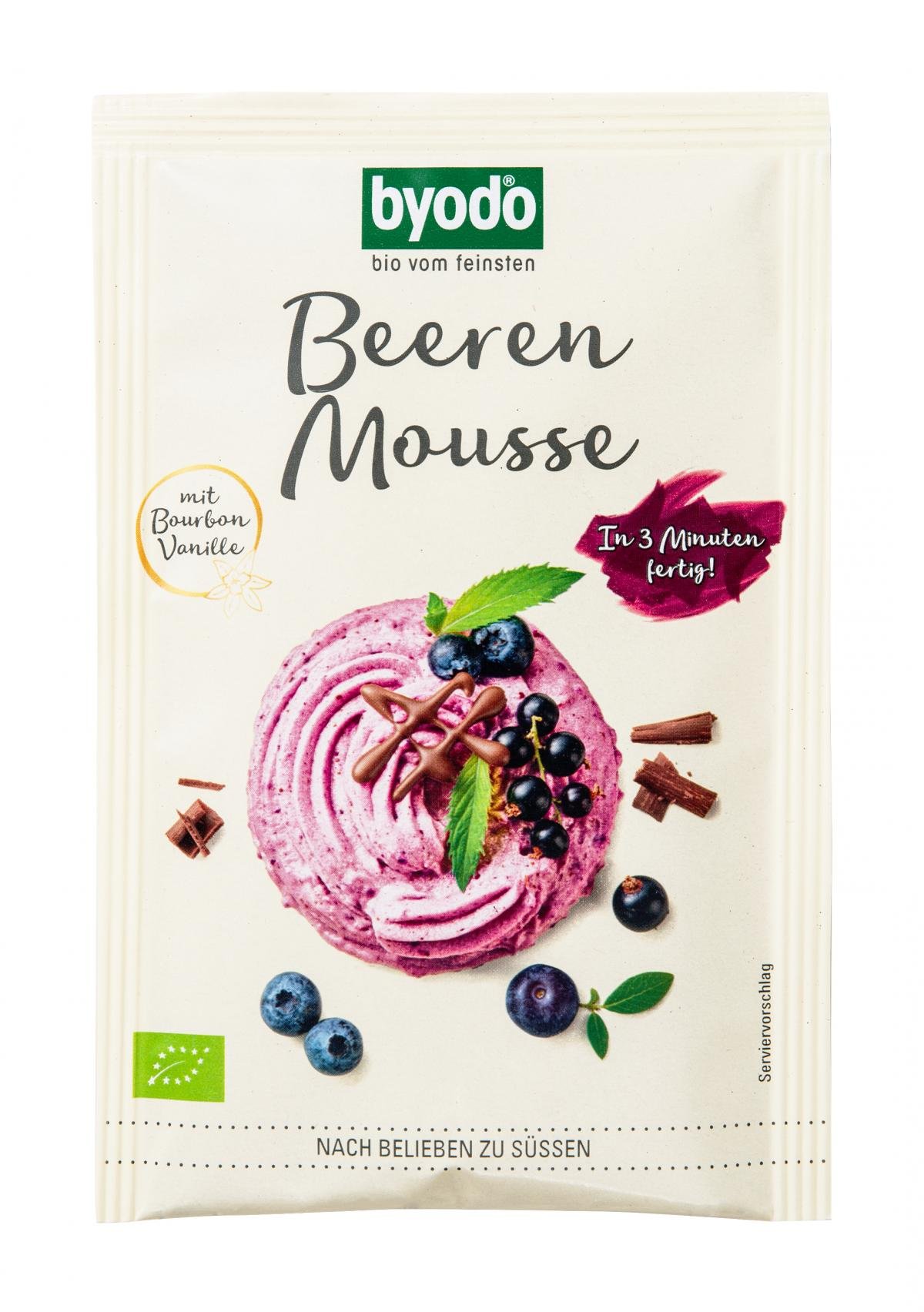 Die Beeren Mousse von Byodo ist eine köstlich luftig-cremige Nachspeise mit feinen Heidel- und Johannisbeeren, die individuell gesüßt werden kann.