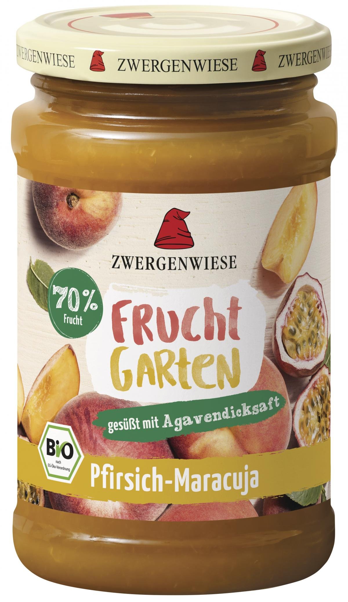 Pfirsiche* 70 %, Agavendicksaft*, Maracujasaftkonzentrat* 8 %, Geliermittel Pektine, Verdickungsmittel Tarakernmehl*.