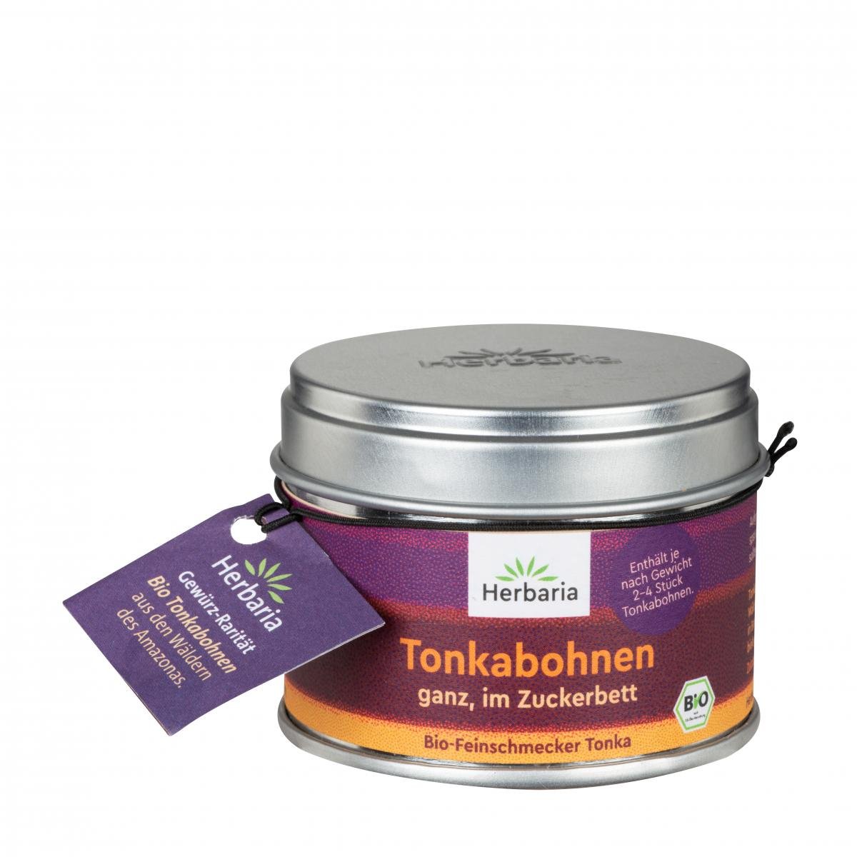 Herbaria Tonkabohnen im Zuckerbett aus biozertifizierter Wildsammlung, gesammelt vom Volk der Quilombolas in den Wäldern des Amazonas. Die in Urucara ansässige Kooperative vermarktet die Bio-Erzeugnisse der Familienbetriebe und hat sich der Erhaltung des kulturellen & ökologischen Erbes verpflichtet, was die Zertifizierung durch das biodynamische Institut (IBD) bestätigt. Vor Ort werden kontinuierlich die Verarbeitungstechniken, die Qualitätsstandards und die Arbeitsbedingungen verbessert. Der direkte Kontakt zu den Sammlern garantiert eine hohe Wertschöpfung. Die Tonkabohnen aromatisieren den Rohrzucker auf natürliche Weise, so dass dieser beispielsweise als Topping verwendet werden kann. Der Kern der Mit den intensiven Mandel-, Marzipan- & Vanillenoten passt die Tonkabohne besonders gut zu Desserts wie z.B. Eis, Panna Cotta, Crème Brûlée und Schokolade, aber auch dunkle Saucen & dunkles Fleisch werden mit dem intensiven Aroma perfekt abgerundet.