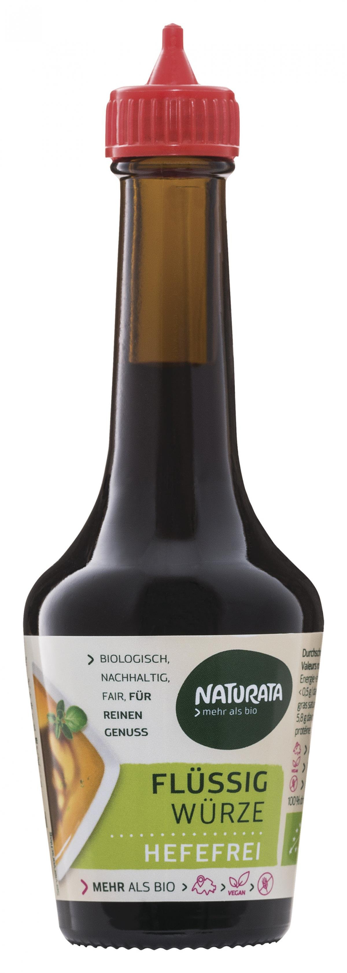Direkt am Tisch oder schon in der Küche bringt die Naturata Flüssigwürze Pfiff in jede Speise. Leicht dosierbar und mit kräftig würzig-gemüsigen Geschmack ist sie ideal zum (Nach-) Würzen und Marinieren. Ihre aromatische Note erhält sie durch die Zutat Soja.