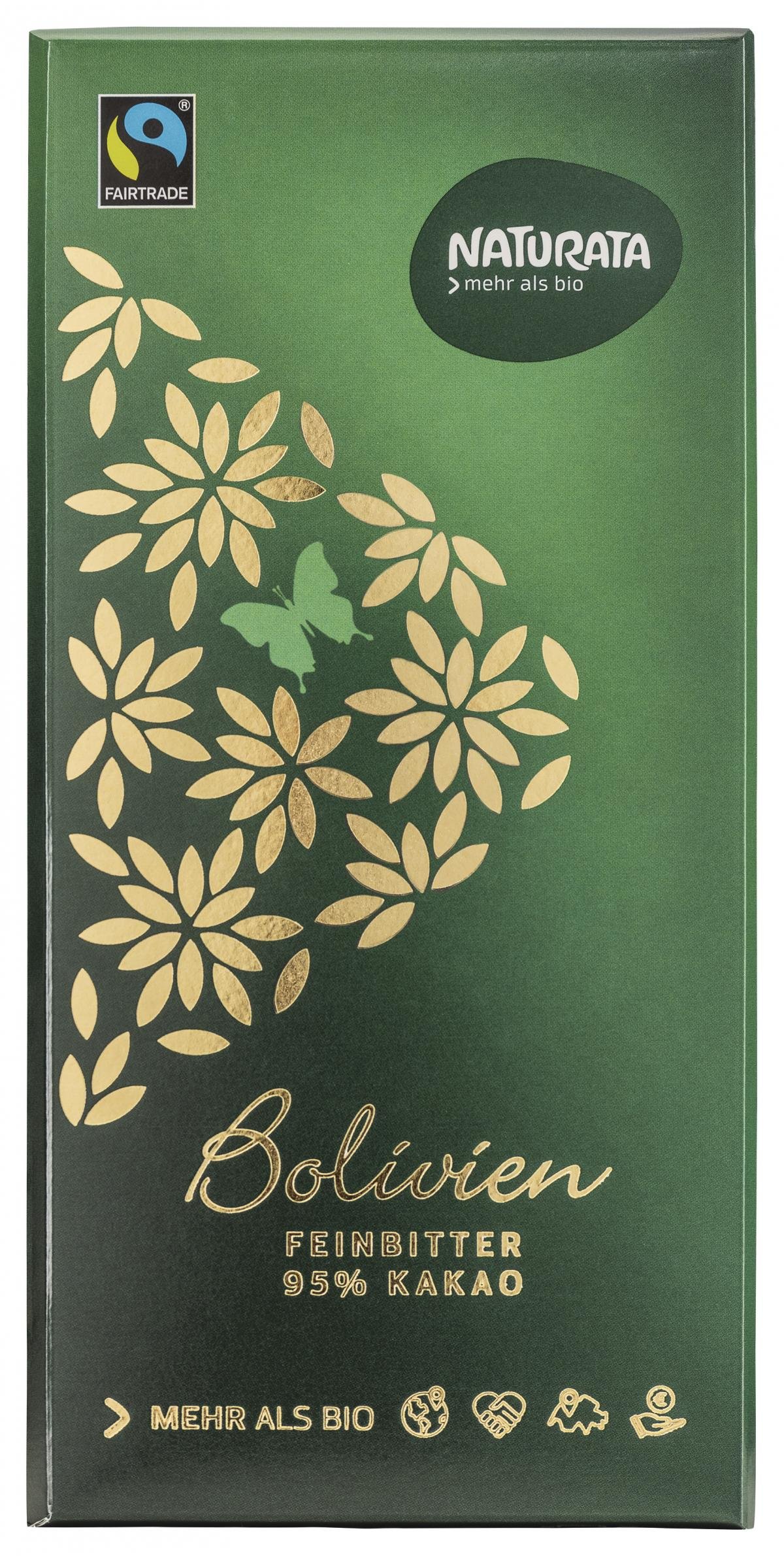 Intensives Aroma mit 95 % Kakaoanteil! Der erlesene Kakao für diese Edelbitter-Schokolade wird von der Kleinbauern-Kooperative El Ceibo in einem Tropengebiet Boliviens nahe der Hauptstadt La Paz angebaut. Die Kooperative wurde 1977 gegründet und begann bereits 1987 auf biologischen Anbau umzusteigen. Erlesene Kakaobohnen der Sorte Trinitario vereint mit einer schonenden Schweizer Verarbeitung machen diese Schokolade zu einem besonderen Genuss - mit einem charakteristischen, intensiven Aroma.