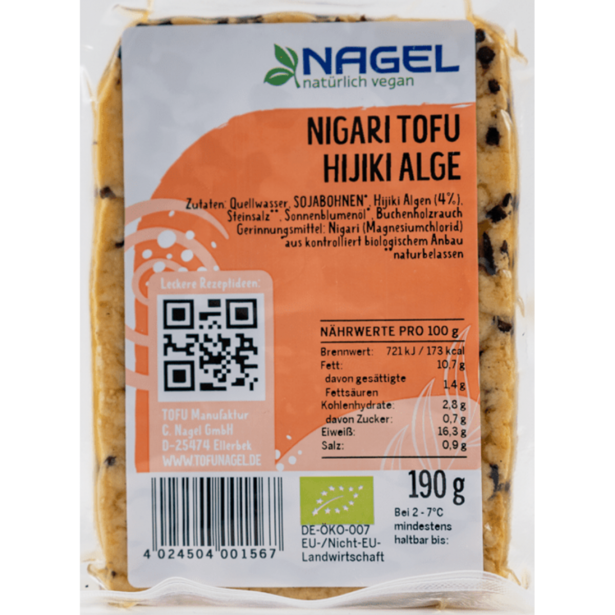 Als wäre es ein Stück asiatischer Esskultur: zarter Tofu, versetzt mit der feinen Hijiki Alge. Eine Delikatesse für Tofu Fans. Der würzige, leicht salzige Geschmack des Meeres kommt bei jedem Bissen gut zur Geltung. Ein paar Tropfen Zitrone verstärken dieses pikante Aroma noch. Lassen Sie sich diese Köstlichkeit auf der Zunge zergehen: gebraten, roh aufs Brot mit Senf, im Salat, auf die Pizza oder als Spieß mit Gemüse, gegrillt.