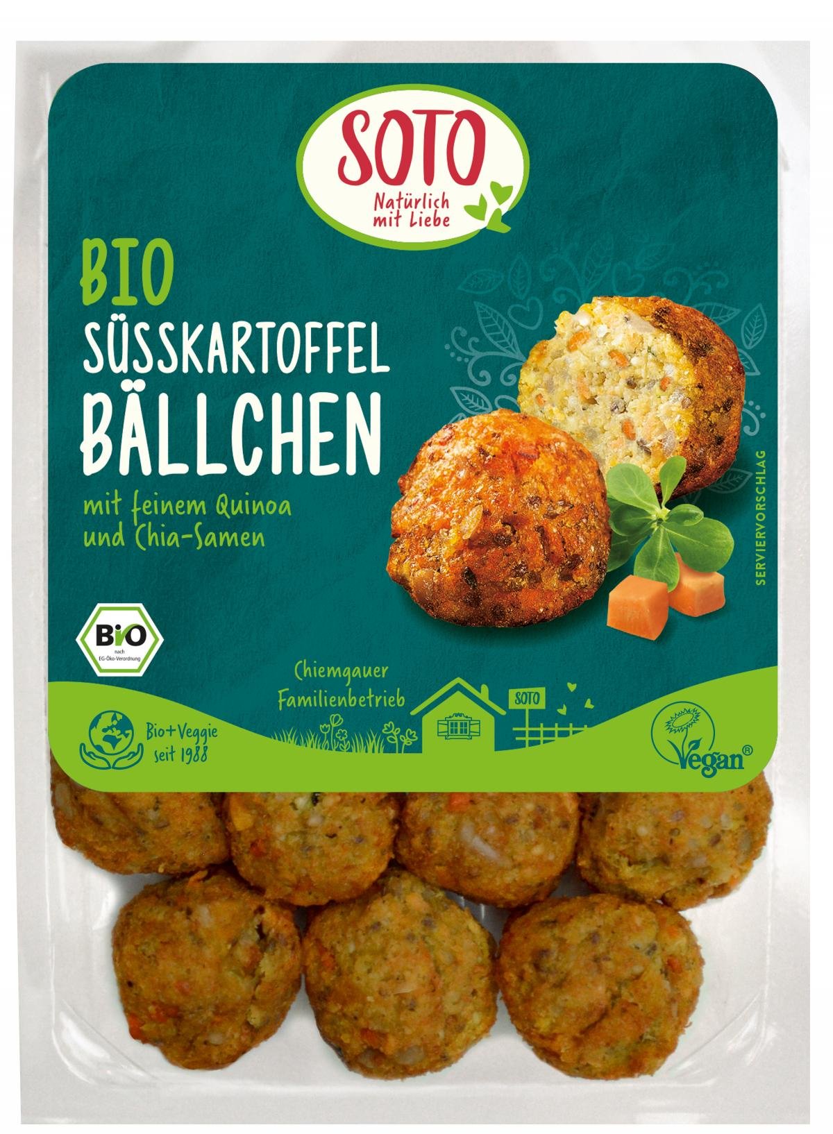 Die Hanf-Süßkartoffel-Bällchen sind eine Quelle wahrer Superfoods: Quinoa, Hanf- und Chiasamen vereint mit feinem Gemüse und knackigen Sonnenblumenkernen. Der herrlich nussige Charakter wird von einer zart-frischen Zitronennote unterstrichen.