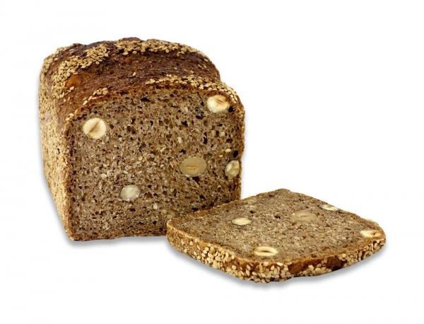 Ein charaktervolles Vollkornbrot, das mit seinen Röstaromen die Sinne öffnet. In der saftigen Krume verbergen sich knackige Haselnüsse und Sesam, beides geröstet, die den Gaumen verwöhnen. Zusätzlich in Sesam gewälzt gefällt unser Brot mit den zwei Einschnitten in der kräftigen Kruste auch optisch.