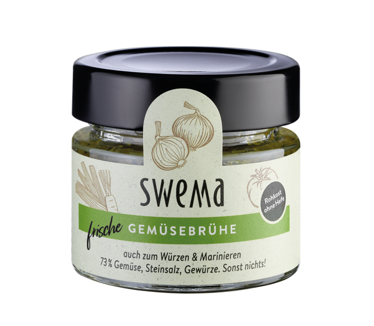 SweMa Frische Gemüsebrühe mit 73% rohem Gemüse, Steinsalz, Gewürze. Sonst nichts!