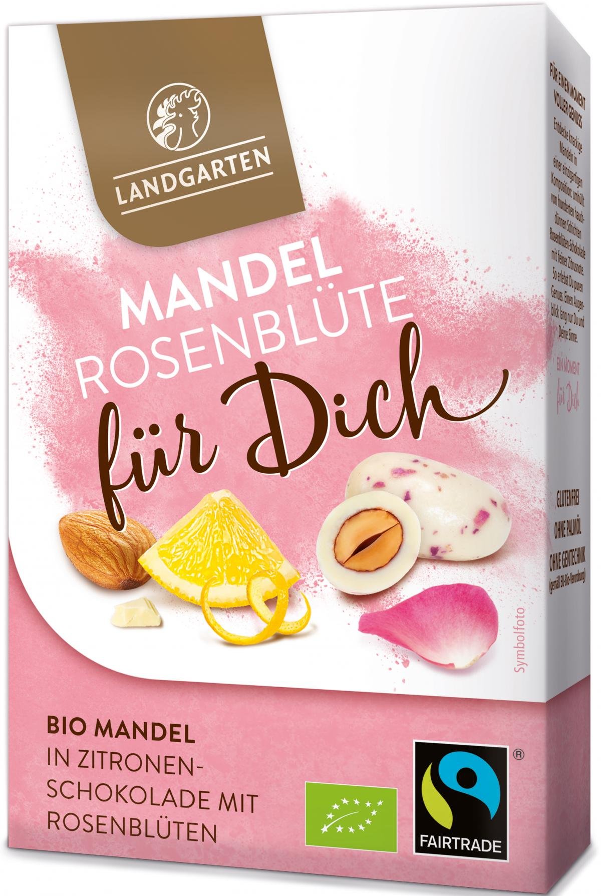 feiner Snack für zwischendurch, Kombination von knackigen Mandeln mit edler Schokolade und zarten Rosenblüten