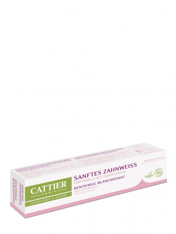 Das Sanfte Zahnweiss ist zur täglichen Zahnpflege, auch bei empfindlichem Zahnfleisch, geeignet. Die Zahncreme kombiniert sorgfältig ausgewählte, effektive und zugleich sanfte Wirkstoffe für gesunde und natürlich weiße Zähne. Das Sanfte Zahnweiss hellt die Zähne auf, stärkt das Zahnfleisch und reinigt die Zähne sanft, ohne dabei den Zahnschmelz anzugreifen. Ohne Peroxid. Vegan.