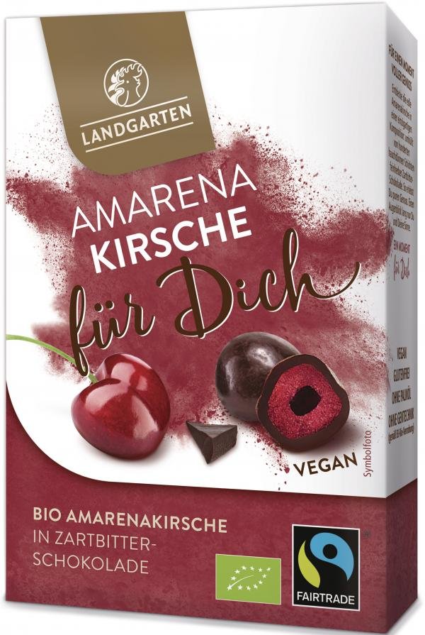 Zartbitterschokolade* 89% (Kakaomasse*, Rohrzucker*, Kakaobutter*, Kakaopulver stark entölt*, Emulgator: Lecithin (SOJA*)), Amarenakirschen* 10% (Sauerkirschen* 85%, Invertzuckersirup*, natürliches Aroma), Überzugsmittel: Gummi arabicum*; Zucker*, Dextrose*. Kakao: 62% mindestens in der Zartbitterschokolade.