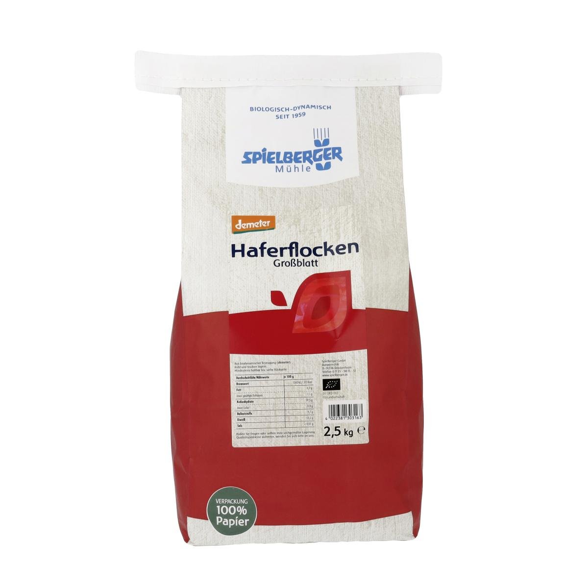 Die Herstellung von Haferflocken unterscheidet sich von allen anderen Flocken. Beim Hafer ist die Schale, der sogenannte Spelz, besonders fest mit dem Korn verbunden. Er fällt deshalb nicht beim Dreschen ab. Der Spelz ist aber nicht genießbar und muss vor dem Flockieren entfernt werden. Damit die Haferkerne ihr wundervoll nussiges Aroma entfalten können, werden sie bei Spielberger vor dem Entspelzen zuerst schonend gedarrt. Das ist eine echte Besonderheit, denn unsere Mühle setzt als einzige Bio-Flockenmühle auf die Rohhafer-Darre. Dabei wird der ungeschälte Hafer mehr als anderthalb Stunden erwärmt. Der unverdauliche Spelz schützt dabei die empfindlichen Kerne und seine positiven Inhaltsstoffe, während das Darren den Flocken ihr einzigartiges Aroma verleiht. Nach der Darre wird der Hafer vom Spelz befreit, wie alle anderen Getreidesorten gedämpft und zu Flocken gewalzt. Bei Großblattflocken ergibt ein Getreidekorn eine Flocke. Hafer wird häufig unterschätzt, dabei ist die alte Getreidesorte ein wahres heimisches Superfood. Hafer bietet eine Menge Vitamine und Mineralstoffe wie B-Vitamine, Vitamin E, Kalium, Eisen und Zink. Zudem punktet das Getreide mit einem hohen Eiweißgehalt und sättigenden Ballaststoffen. Besonders reich ist Hafer an dem Ballaststoff Beta-Glucan. Dieser macht ihn besonders gesund, denn Beta-Glucan wirkt sich positiv auf den Cholesterin- und Blutzuckerspiegel aus.