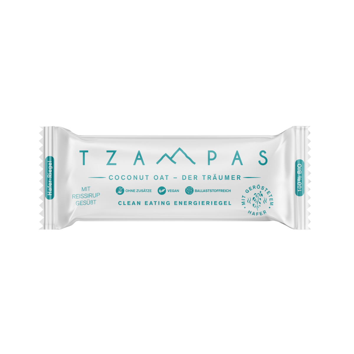 Der Energieriegel Coconut Oat – Der Träumer ist der erste TZAMPAS Riegel aus geröstetem Hafermehl. Die besonders aromatische Mischung aus Kokos- und Mandelmus harmoniert hervorragend mit der Zartbitterschokolade, ohne dabei zu süß zu sein. Ob auf einsamen Berggipfeln, den Weiten blühender Felder oder im wilden Durcheinander der Großstadt- der Träumer macht seinem Namen alle Ehre und entführt dich im Nu and die schönsten Südseestrände.