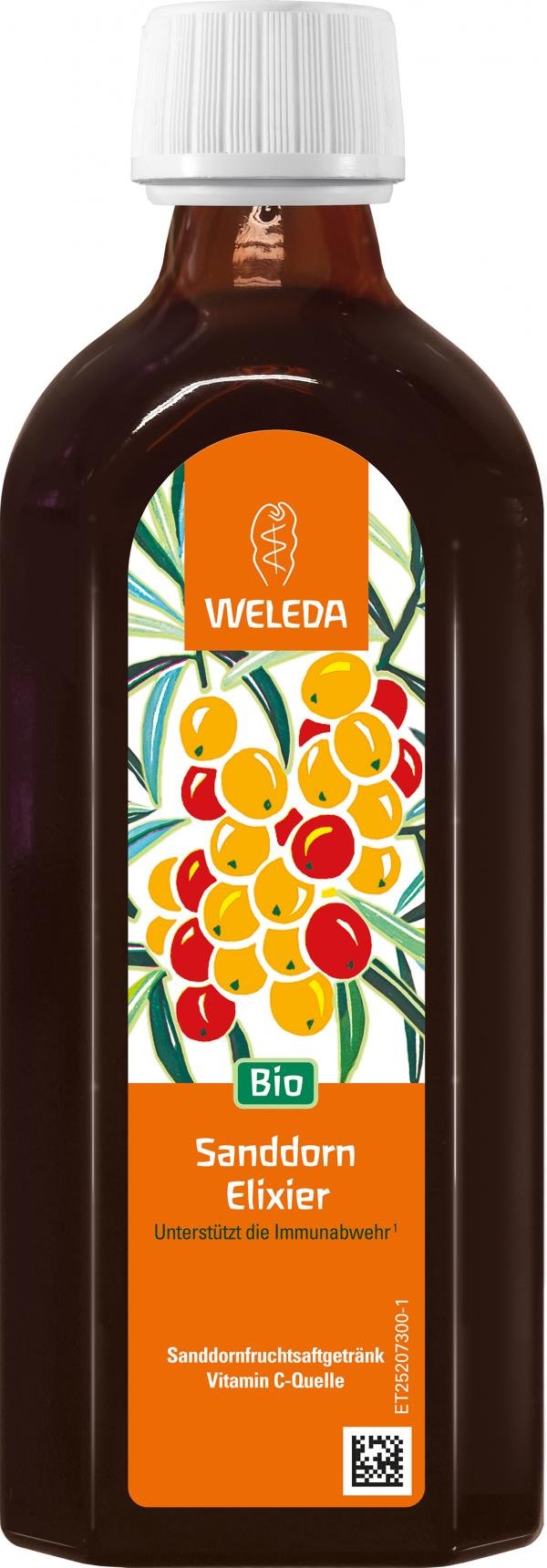 Weleda Sanddorn Elixier in Wasser, Tee oder Milch ergibt ein anregendes, kräftigendes Getränk mit unverwechselbarem Geschmack. Es verfeinert aber auch Quark, Joghurt oder Müsli.
